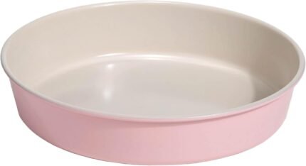 Paris Hilton Nonstick Carbon Steel Bakeware Collection, 9-Inch Round Cake Pan, Dishwasher Safe, Made without PFOA and PFAS, Pink Cream Two-Tone