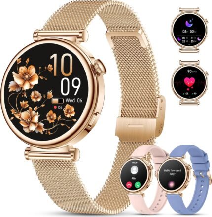 Smart Watch for Women (Answer/Make Call) 3 Bands 1.27″ HD Fitness Tracker Smartwatch Compatible Android iPhone Phone with Pedometer/Heart Rate/Sleep Monitor,120+ Sports IP68 Waterproof, Rose Gold