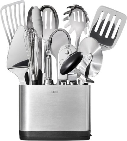 Price: (as of – Details) Complete your kitchen with the OXO SteeL 15 Piece Utensil Set. Each stainless steel tool