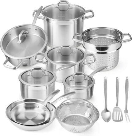 Country Kitchen Cookware Set with Removable Handle, Oven & RV Safe Pots and Pans Set, Stainless Steel, Original