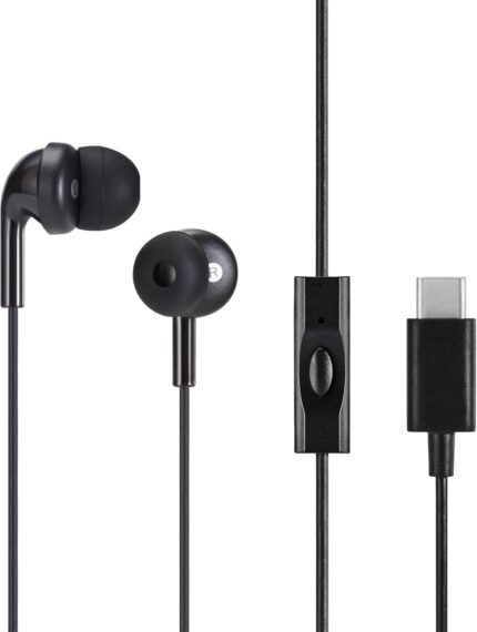 Amazon Basics Wired Earbuds with Microphone, in Ear Headphones, USB-C, 4.2 ft Long Cable, S/M/L Ear Tips, One Size, Black