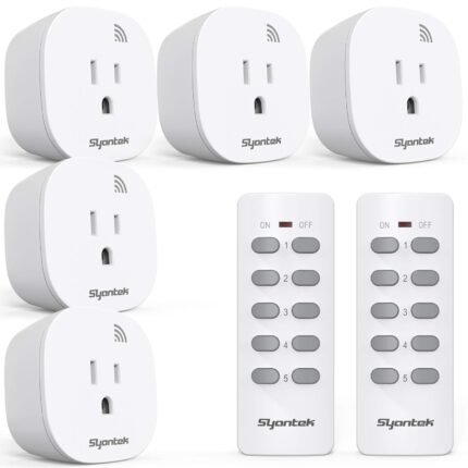 Remote Control Outlet Wireless Light Switch for Household Appliances, Expandable Remote Light Switch Kit, Up to 100 ft Range, FCC Certified, ETL Listed, White (5 Outlets + 2 Remotes)