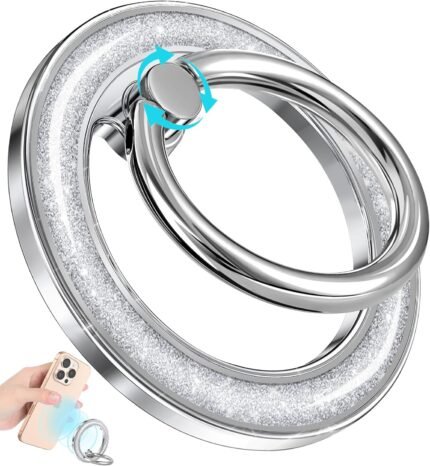 Phone Ring Holder Compatible with MagSafe – Magnetic Cell Phone Grip Women Glitter Magnet Removable Finger Ring Grip Stand Cute Girly Sparkly for iPhone 17 16 15 14 13 Pro Max Plus Air, Silver