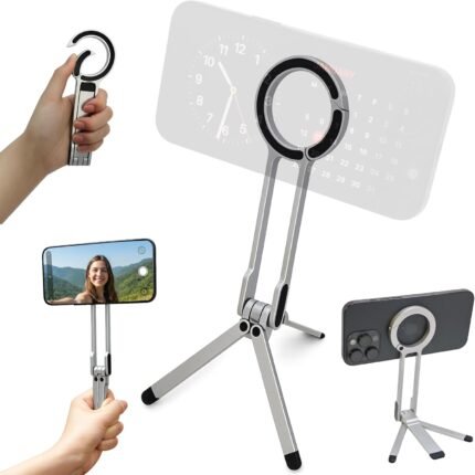 Aluminum Body Magnetic Phone Tripod Stand, 360 Universal Tripod, Magnetic Ring Included for Android, Strong Magnetic Travel Phone Tripod, Foldable Adjustable Design for Desk, Live Streaming, Vlogging