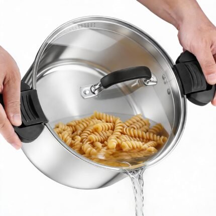 P&P CHEF Pasta Pot with Strainer Lid, 6 Quart Stainless Steel Stockpot for Home Kitchen Restaurant Cooking, Visible Glass lid Heat-Proof Handles, Dishwasher Safe