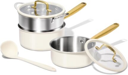 2-Piece Nonstick Cookware Set: 8.5″ Egg Pan & 1.4QT Saucepan | 100% Non-Toxic (PFAS/PFOA Free), Dishwasher Safe | The Ultimate Space-Saver for Studio, Dorm & First Apartment