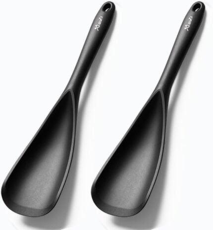 Silicone Spatula Spoon, Great for Both Cooking and Serving Durable BPA-Free Matte Black Silicone, Seamless Design, Safe for Nonstick Cooking Surfaces, 2-Pcs, Black