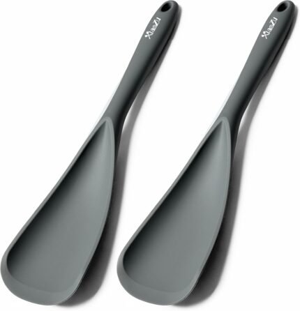 Silicone Spatula Spoon, Great for Both Cooking and Serving Durable BPA-Free Matte Black Silicone, Seamless Design, Safe for Nonstick Cooking Surfaces, 2-Pcs, Gray