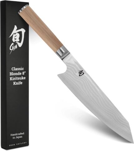 Shun Classic Blonde 8″ Chef’s Knife, Handcrafted Japanese Kitchen Knife for Professional and Home Chefs, VG-MAX Core with Damascus Stainless Steel Cladding, Pakkawood Handle