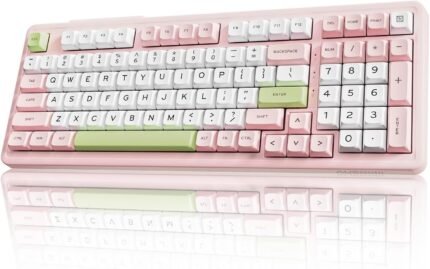AUSDOM Silent Wireless Bluetooth Mechanical Keyboard, BT5.3/Type-C/2.4G Hot swappable Gaming Keyboards with Quiet Switch, RGB Backlit, Numpad, Cute Pink Creamy Keyboard for Mac/Win/Office, 98 Keys