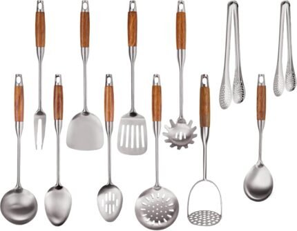 Price: (as of – Details) Product description Lazycorner 12 Pcs Stainless Steel Kitchen Utensils Set 12 Pcs of kitchen utensil