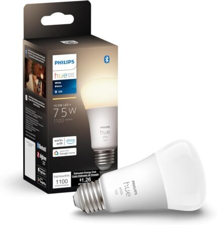 Philips Hue Smart 75W A19 LED Bulb – Soft Warm White Light – 1 Pack – 1100LM – E26 – Indoor – Control with Hue App – Works with Alexa, Google Assistant and Apple Homekit