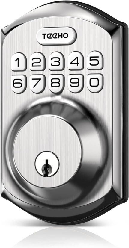 TEEHO TE001 Keyless Entry Door Lock with Keypad – Smart Deadbolt Lock for Front Door with 2 Keys – Auto Lock – Easy Installation – Satin Nickel
