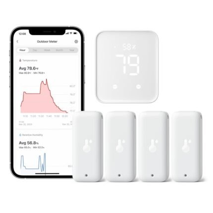 SwitchBot Wi-Fi Humidity Sensor 4 Pack with Hub 2 (Matter Enabled), IP65 Indoor Outdoor Thermometer Wireless, Humidity/Temperature/Dewpoint/VPD Sensor with Smart Alerts, Compatible with Alexa