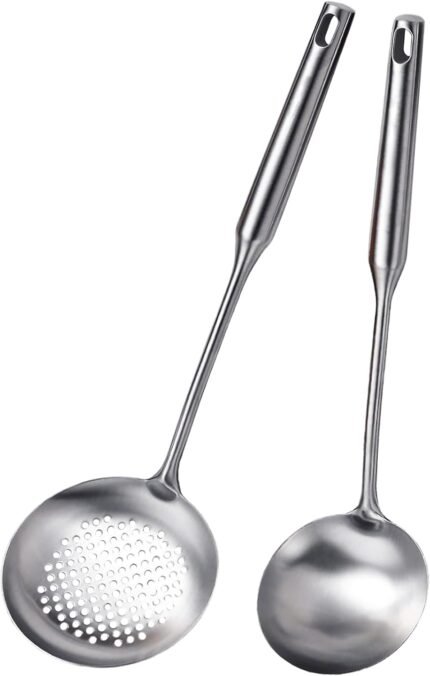 Price: (as of – Details) Product description Stainless Steel Soup Ladle and Slotted Spoon Set Durable 304 Stainless Steel:Construction Crafted