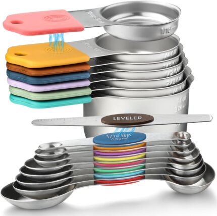 Price: (as of – Details) Product description 【Magnetic Measuring Cups and Spoons Set】This stainless steel heavy duty magnetic measuring cups