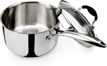 AVACRAFT Tri-Ply Stainless Steel Saucepan with Glass Strainer Lid, Two Side Spouts, Multipurpose Sauce Pan with Lid, Sauce Pot, Cooking Pot (Tri-Ply Full Body, 3.5 Quart)