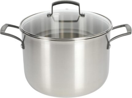 Babish 8 Quart Tri-Ply Stainless Steel Stock Pot with Glass Lid & Black Handles – Dutch Oven, Oven Safe, Dishwasher Safe
