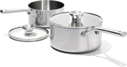 OXO Mira Tri-Ply Stainless Steel, 1.5QT and 3QT Saucepan Pot Set with Lids, Induction, Multi Clad, Dishwasher and Metal Utensil Safe