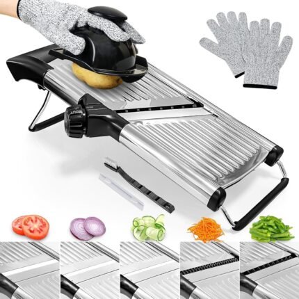 Mandoline Slicer,Mandoline Food Slicer for Kitchen,Mandolin,Vegetable Chopper,Vegtable Slicer,Adjustable Stainless Steel Veggie Onion Tomato Julienne Cutter with Cut-1 Pair Cut-Resistant Gloves