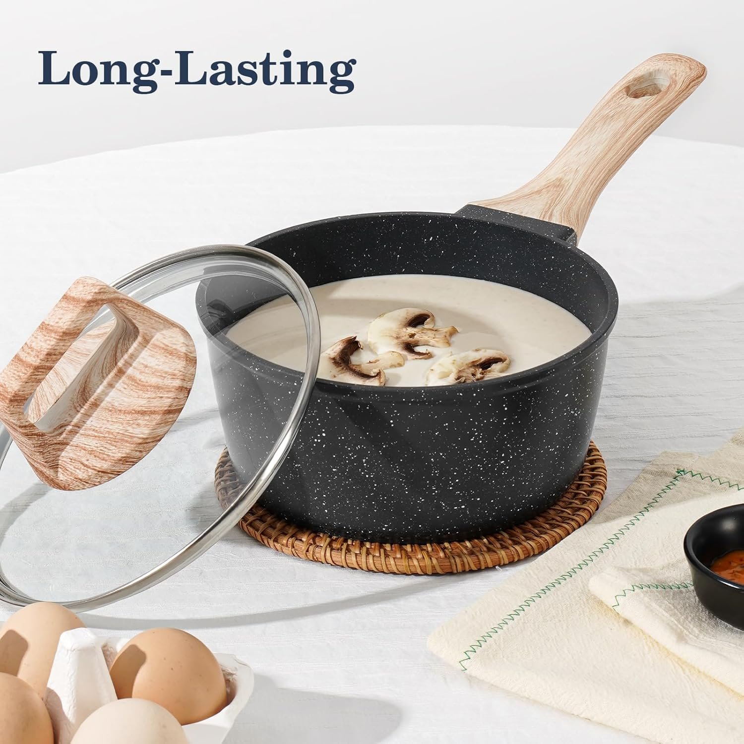 Safe, Non-Toxic Cookware You Can Trust – Designed for healthier, worry-free cooking. Crafted with a durable granite non-stick coating free from harmful chemicals like PFOS, PFOA, lead, and cadmium, this pots and pans set ensures your meals are as clean and wholesome as the ingredients you use.