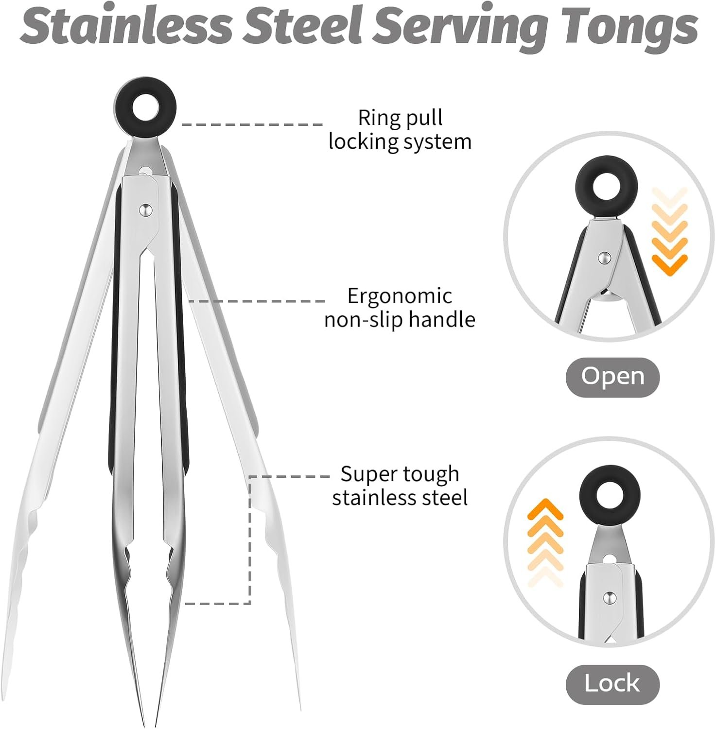 【Widely Applied】The cooking tongs can be widely applied in parties, dinners, afternoon teas, buffets, catering, wedding celebrations, or everyday use in families, hotels, and restaurants, suitable for grilled cheese, fish, crab, chicken, turkey, burgers, flipping burgers, serving salads, carving grilled meat, and more