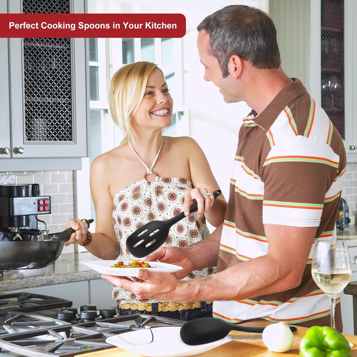 【Perfect Length for Everyday Task】Our kitchen utensils set includes 2 spoons with 12.6 inches in length which meet all your cooking need. Ergonomic handle with comfortable grip and Superior silicone head keeps the flex without scratching to your delicate nonstick cookware.