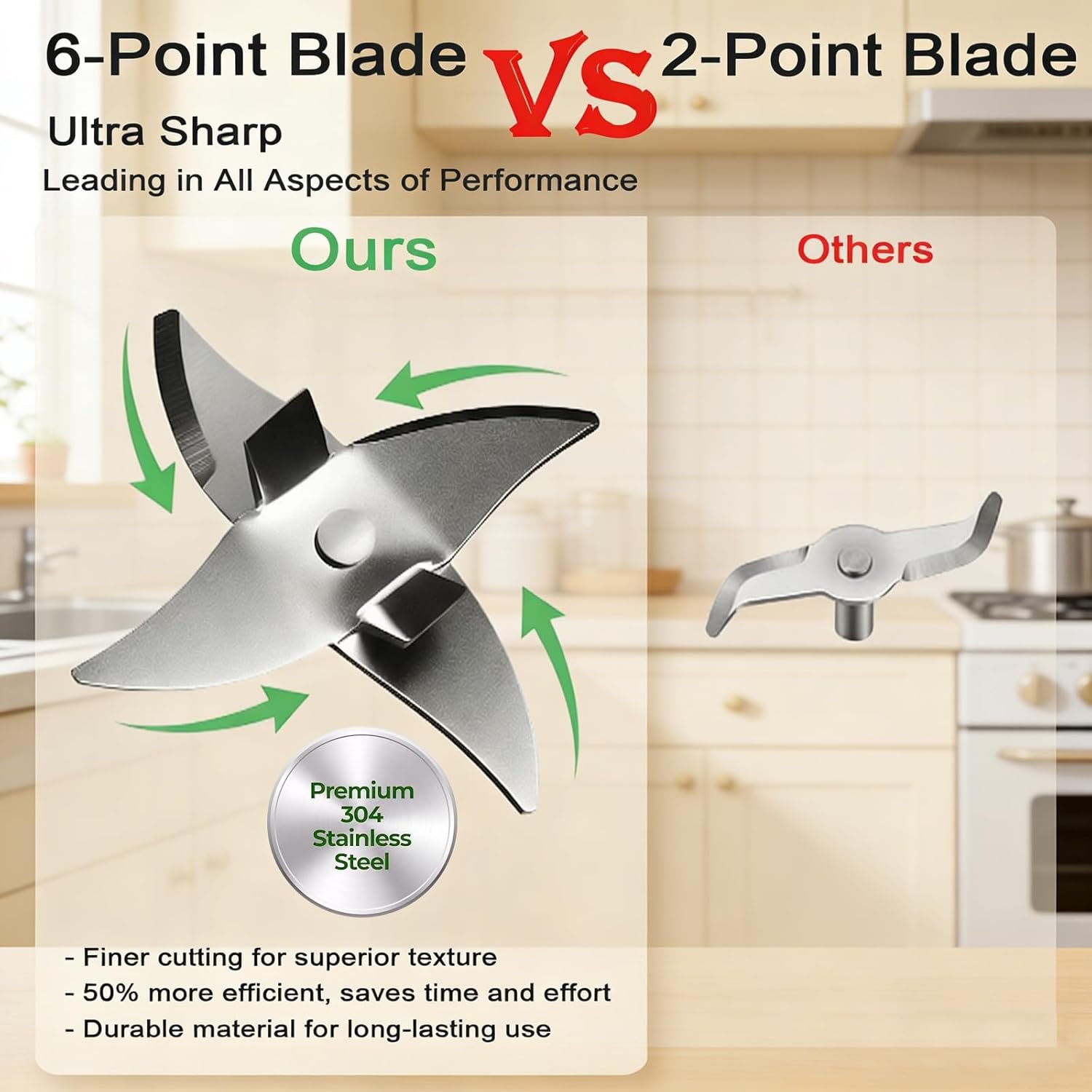 【6-Blade Stainless Steel Electrolytic Blade】Featuring a sharp, corrosion-resistant 6-blade stainless steel design, this blender quickly pulverizes ingredients for smooth, lump-free mixtures. Ideal for blending soups, sauces, smoothies, baby food, and more