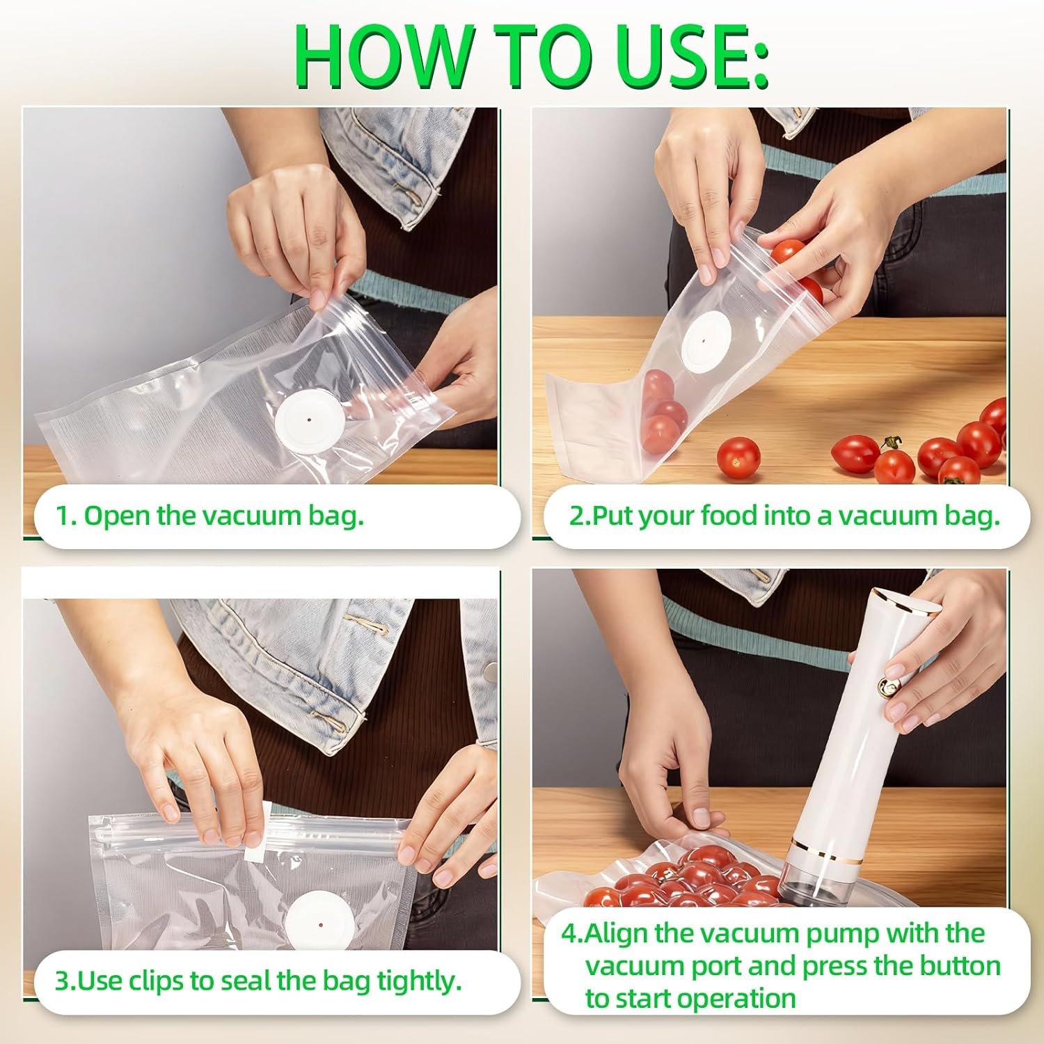 ♻️ Reusable, Eco-Friendly Bags & 6X Longer Freshness: Thickened, BPA-free vacuum bags feature detachable air valves and double seals for secure, reusable storage. Easy to clean, odor-resistant, and safe for freezers/fridges. Extend food freshness over 6 times longer than conventional methods—perfect for meal preppers and travelers!