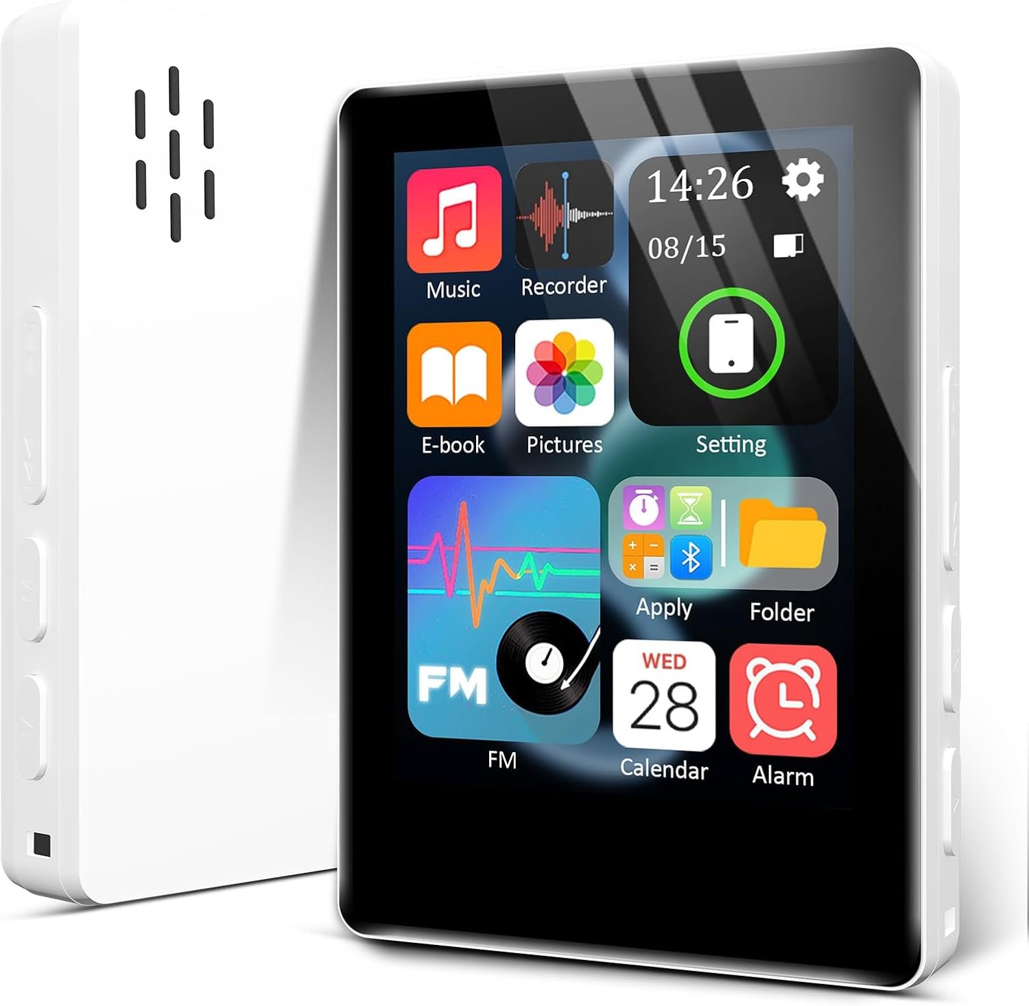 【All-in-One Multifunction Device】MP3 Player with Bluetooth combines five core functions: Music, Recorder, Ebook, FM Radio, and Picture Viewing. No account registration required—power on and use immediately. Intuitive operation with enhanced privacy.