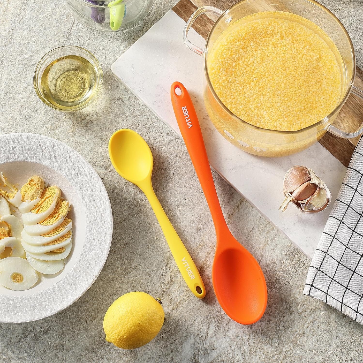 2. Premium Food-Grade Silicone: These spoons are expertly crafted from food-grade silicone, ensuring they are heat-resistant, durable, and completely safe for use with non-stick cookware. You can confidently rely on the quality and safety of theses silicone spoons for cooking.
