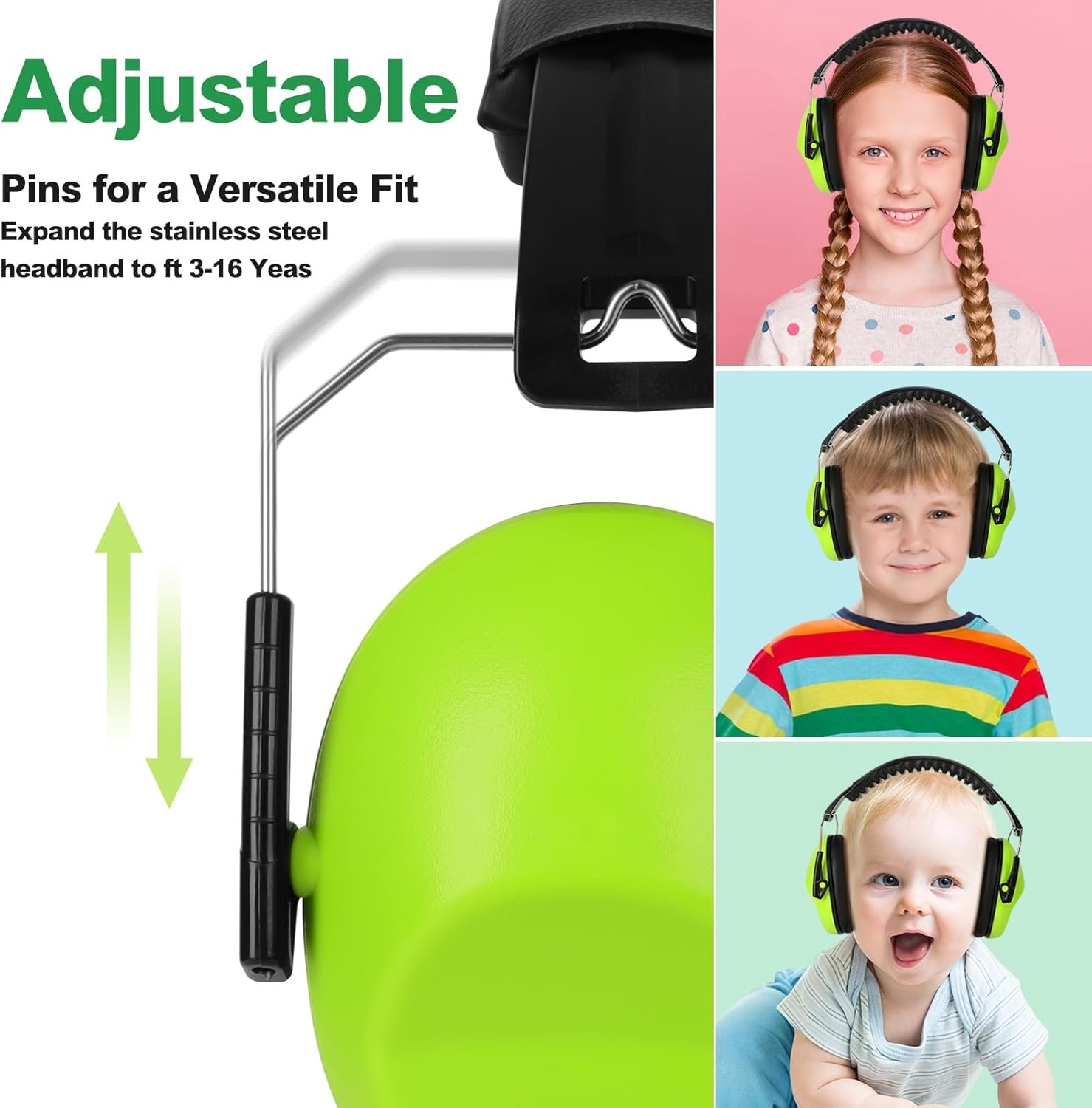 【Highlight Wonderful Comfort and Durability】This One Size Fits All kids ear muffs adopt premium materials and outstanding design to bring a comfortable experience for children of different ages. The 360 degree rotatable cups and ultra-soft ear cushions ensure completely wrapping the child’s ear for a snug fit. The adjustable ergonomic arched wide headband brings all-around security, stability, and durability, which strengthens internal construction without causing pressure.