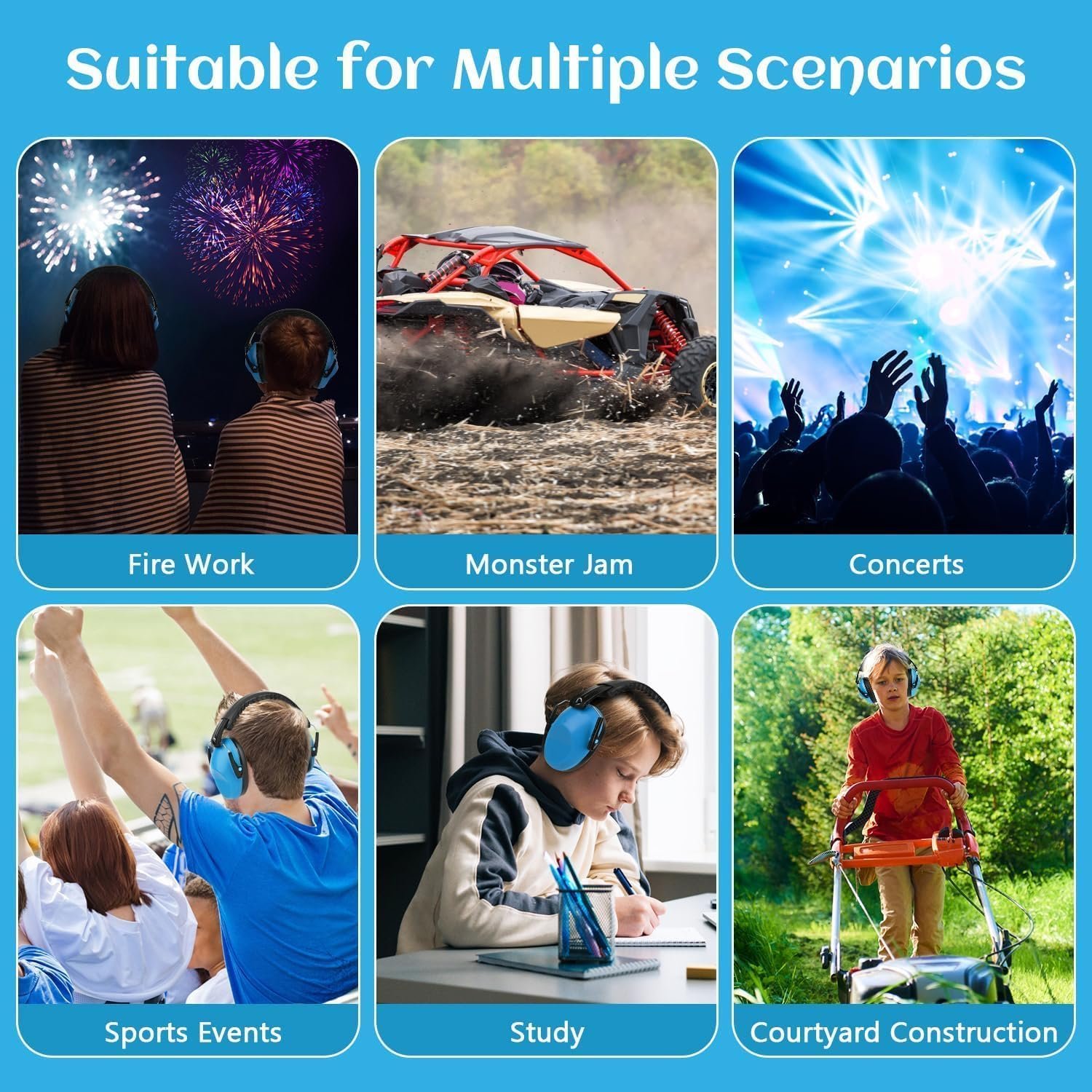 【6 Pack For Sensitive Ears or Daily Demands】The 6 packs of safety earmuffs for kids with a bright pink blue and green design, can increase visibility. These adjustable noise-canceling ear muffs are designed for children aged 3-16. Great for improving kids’ concentration during playing, reading, studying, and relaxing during rest. Ideal for creating a quiet environment and blocking out noise caused by air shows, travel, and yard work and provides the most reliable safety.
