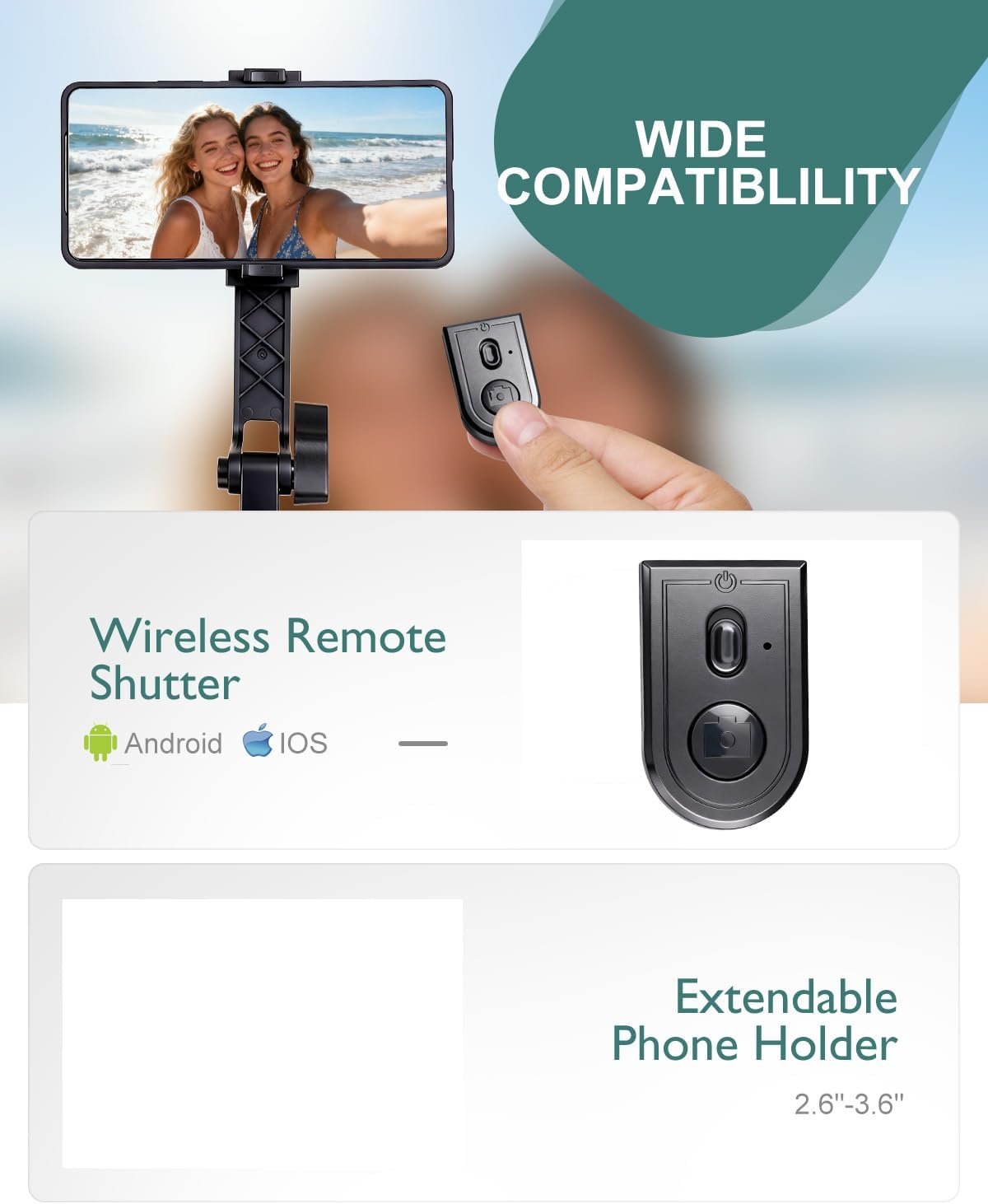【Wide Compatibility】The phone tripod mount fits devices 2.6″-3.6″ wide (4″-7″ screens), compatible with most smartphones.