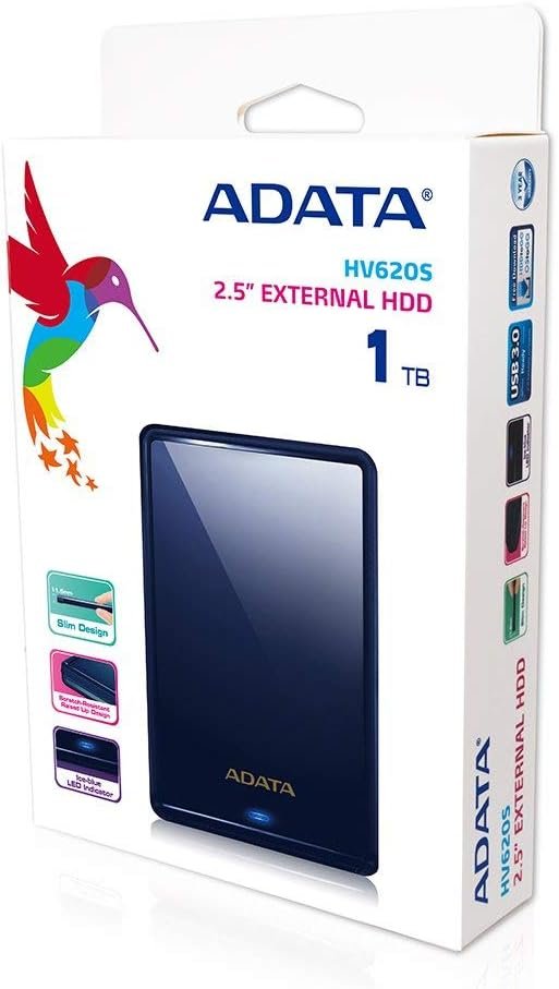 ADATA HV620S Ultra Slim 1 TB USB 3.1 Scratch-Resistant External Hard Drive – Blue (AHV620S-1TU3-CBL)