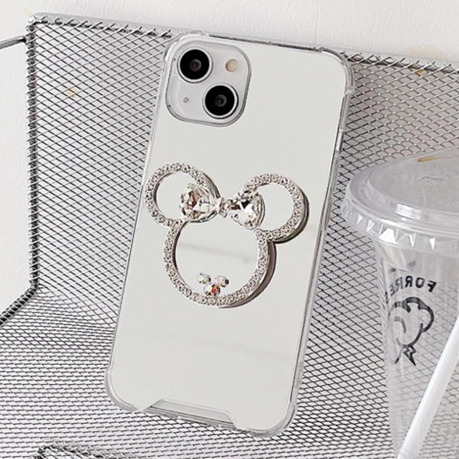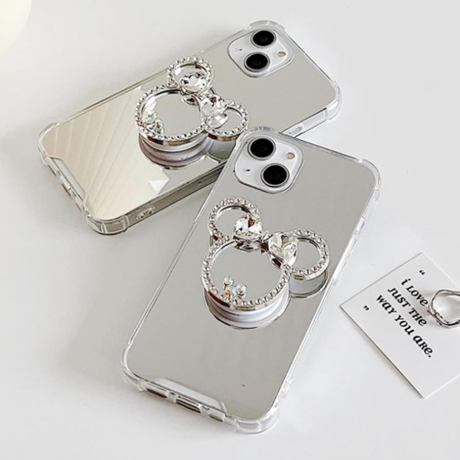 Aesthetic & Cute Phone Grip Collection – Stylish 3D Enamel, Luxury Mirror, and Kawaii Animal Paw Designs – Unique Pop-up Phone Stand & Holder, for Women and Girls (Mouse Ear Mirror)