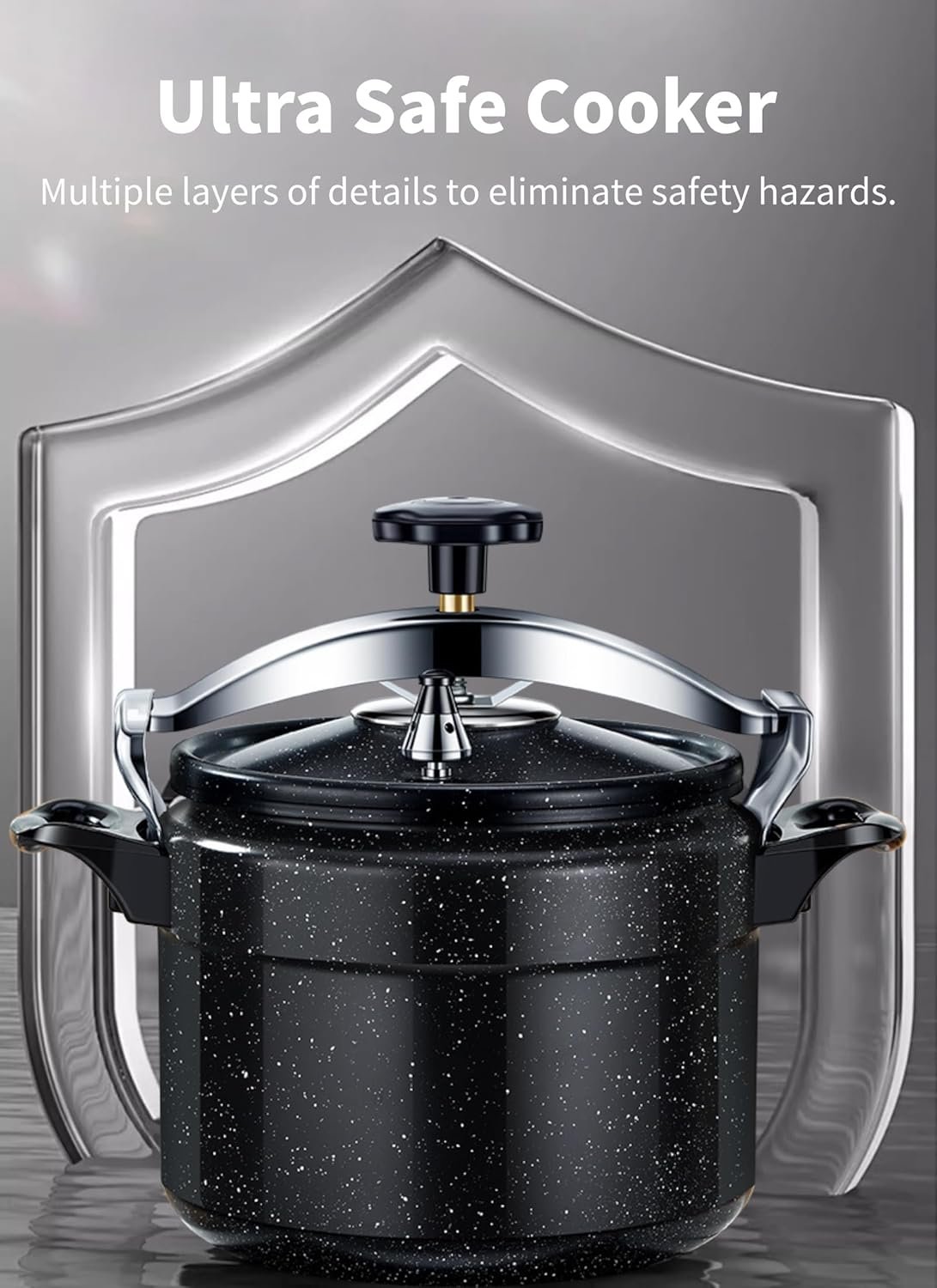 Our pressure cooker features safety-enhancing details such as an easy-lock lid, safety valve and pressure release valve, ensuring risk-cooking.