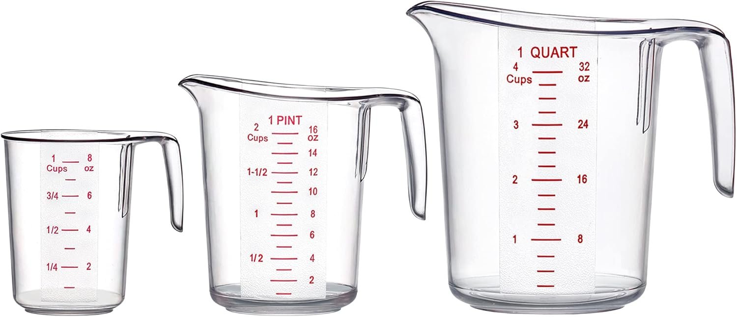 [MULTIPLE SIZES] The set includes 3 measuring cups of various capacities: 1 cup (8 oz, 250 ml), 2 cups (16 oz, 500 ml), 4 cups (32 oz, 1000 ml).