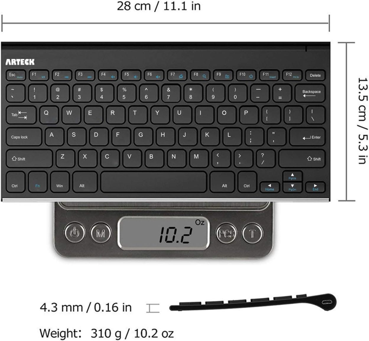 Ultra Thin and Light: Compact size (11.1 X 5.3 X 0.16in) and light weight (10.2oz) but provides full size keys for comfortable typing.