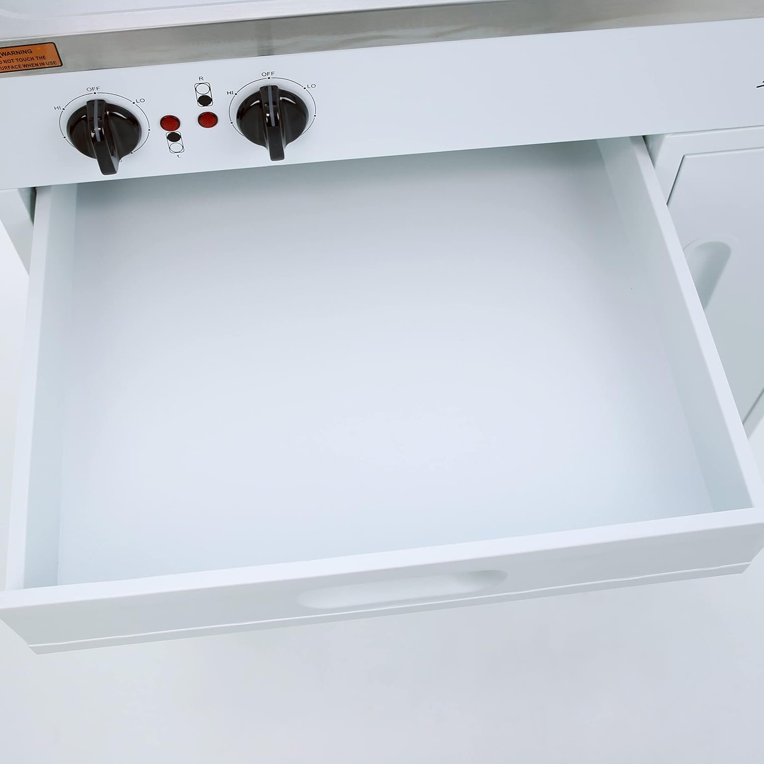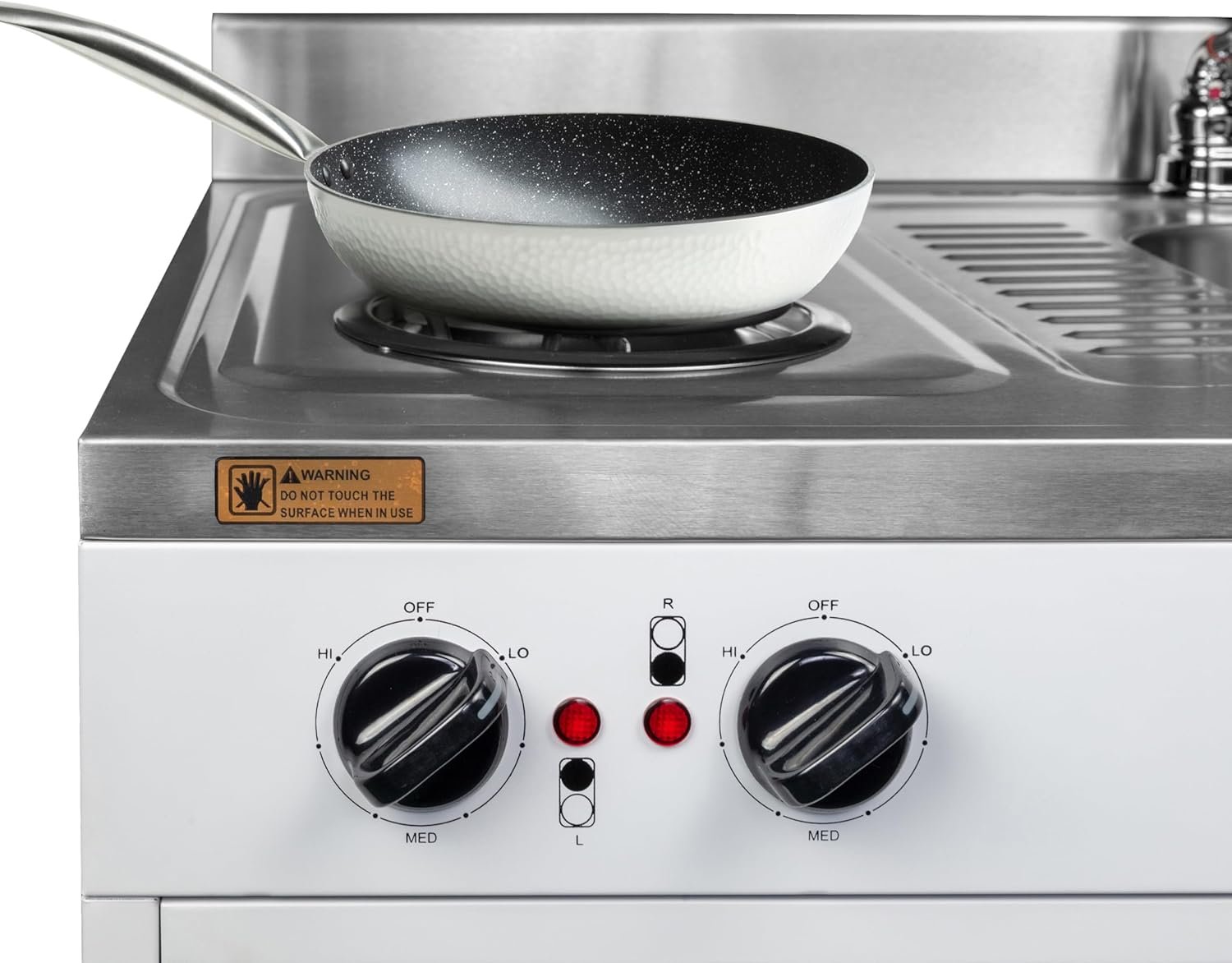 TWO COOKING ELEMENTS: This compact kitchen boasts two electric heating elements (500/900 Watts)