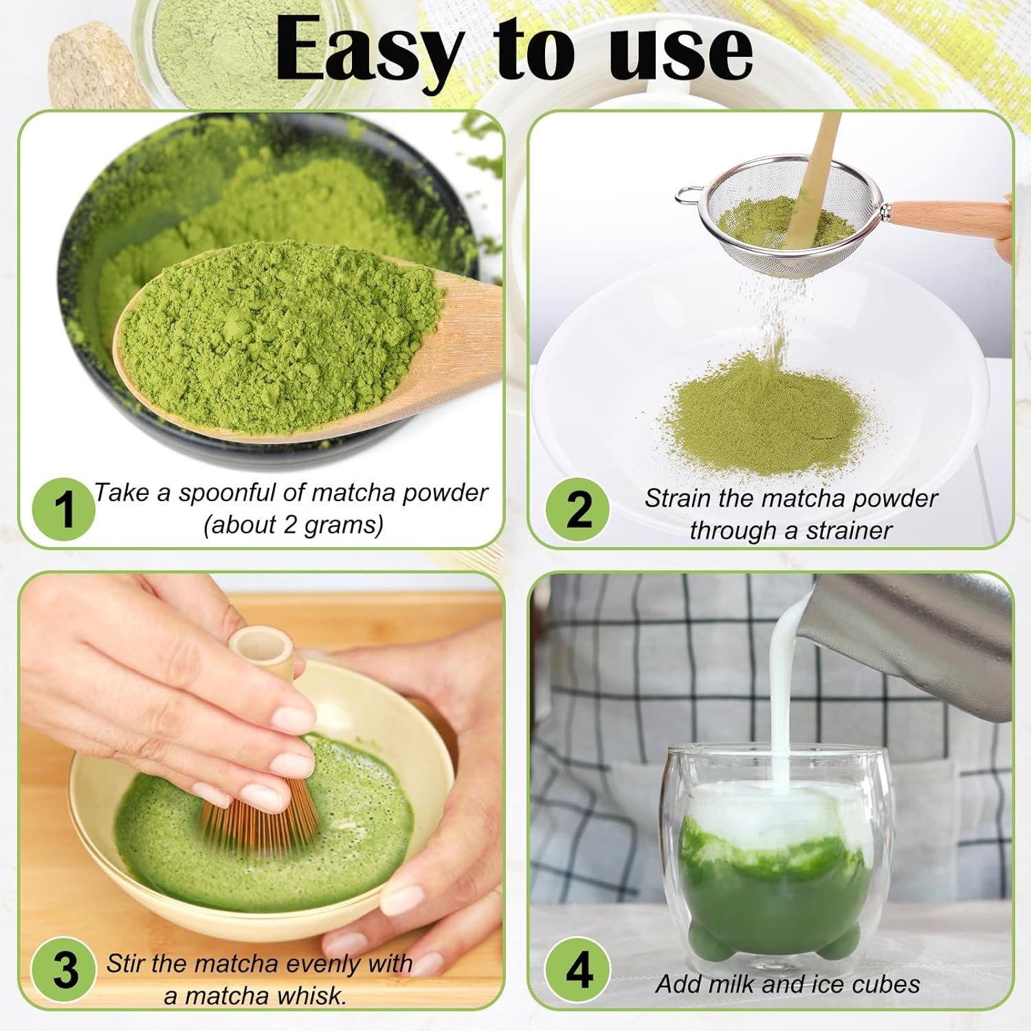ENHANCE THE MATCHA EXPERIENCE: This matcha whisk set is ideal for making delicious matcha lattes, creating a rich foam that enhances the matcha flavor. In daily use, it helps you create perfect matcha without lumps