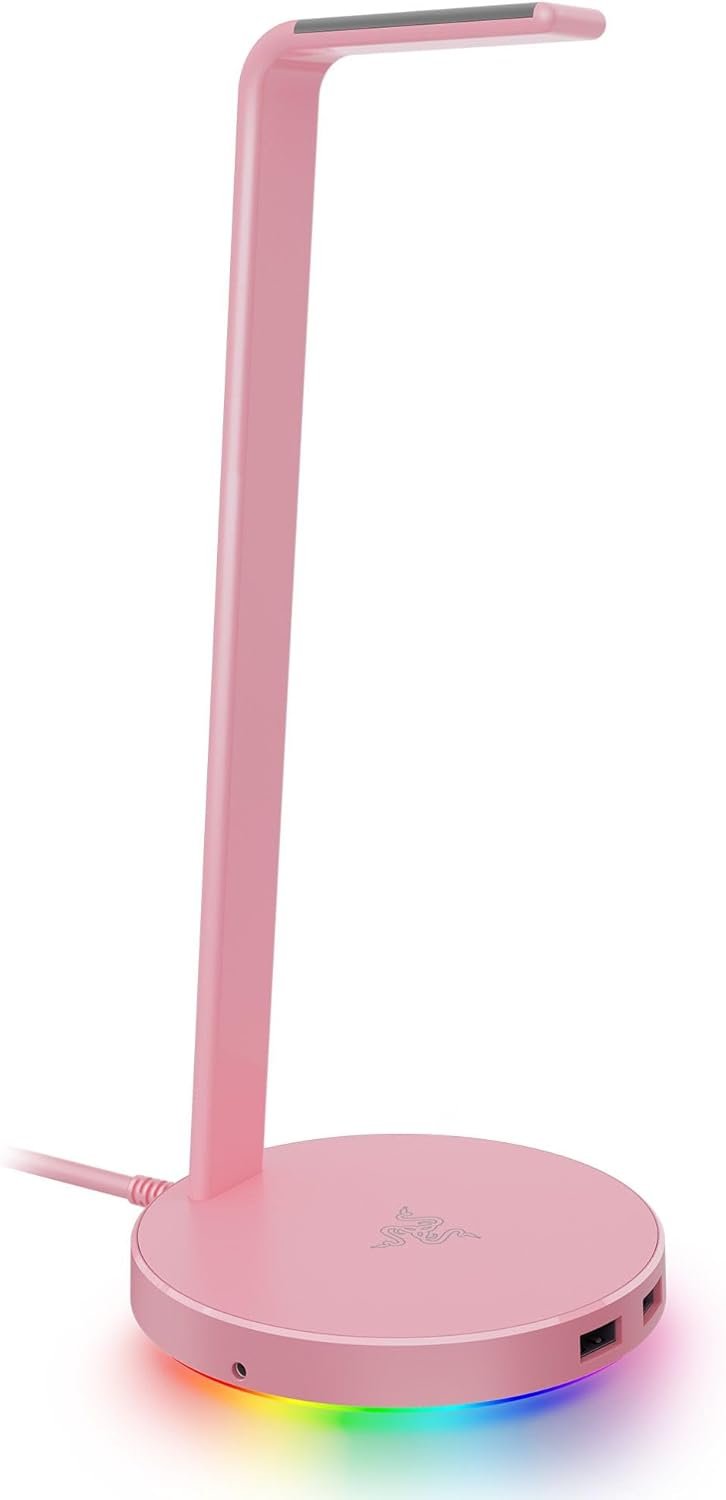 Base Station V2 Chroma Headphone Headset Stand Holder: Chroma RGB Lighting – Taller Stand & Anti-slip Ledge – USB Charging Ports – Anti-Slip Rubber Base – 3.5mm Port + Built-in DAC – Quartz Pink