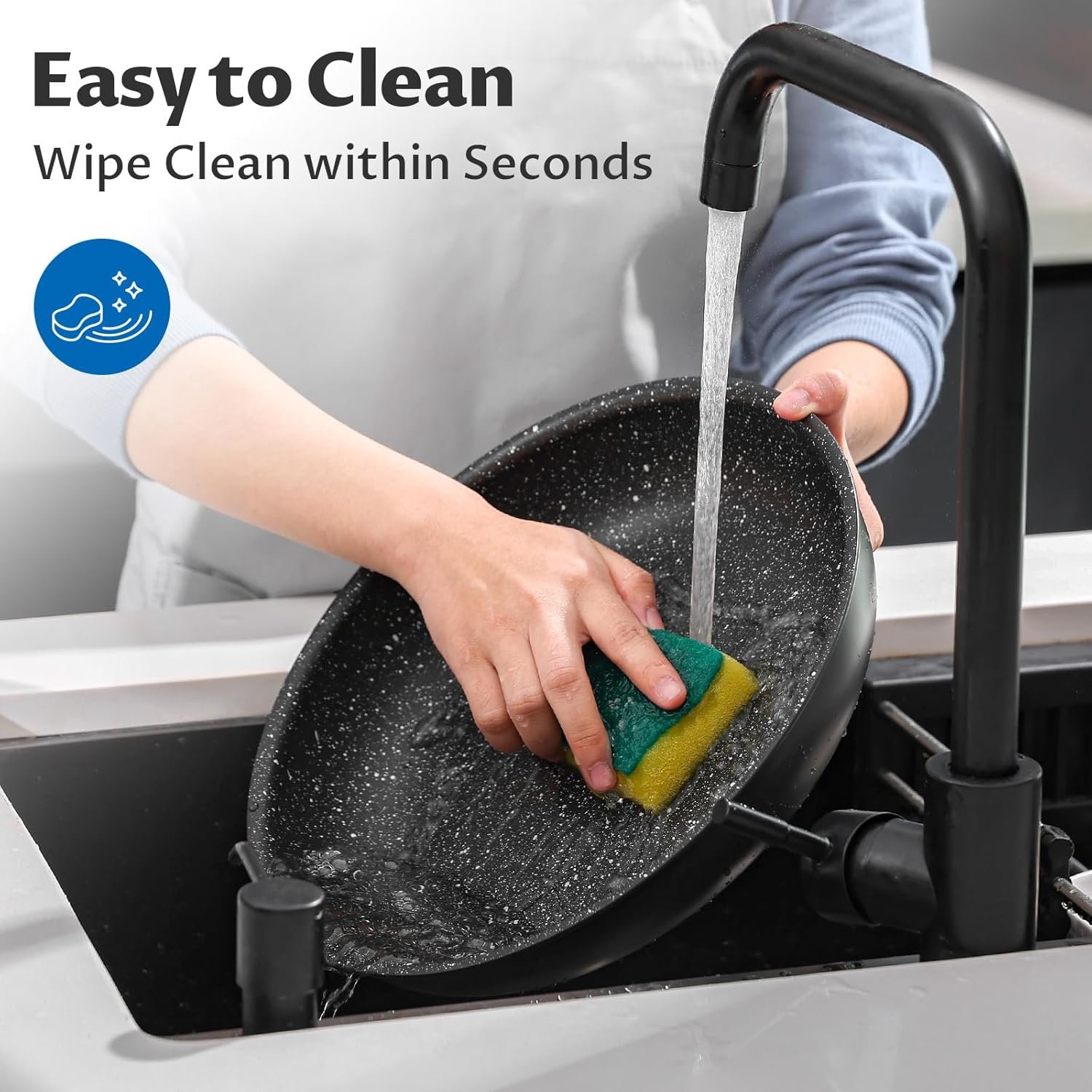 Stain-Resistant and Long-lasting: The coating used in non-stick cookware sets is very durable and will not yellow or burn even after long-term use.
