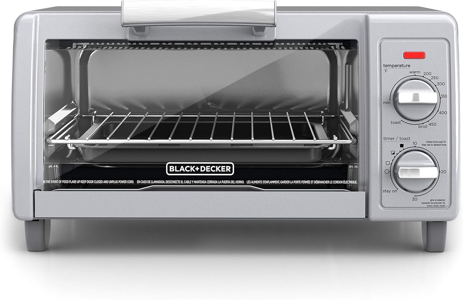 BLACK+DECKER 4-Slice Toaster Oven with Easy Controls, Silver, TO1705SG,Medium,Stainless Steel