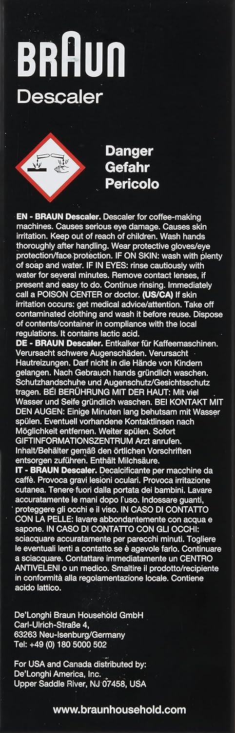 Effective descaler for your Braun BrewSense coffee maker. It ensures the best tasting coffee and increases the long lasting use of your machine. Descaling helps prevent against the buildup of limescale inside your machine depending on your water hardness. This descaler can also be used on other coffee machines or water kettles.