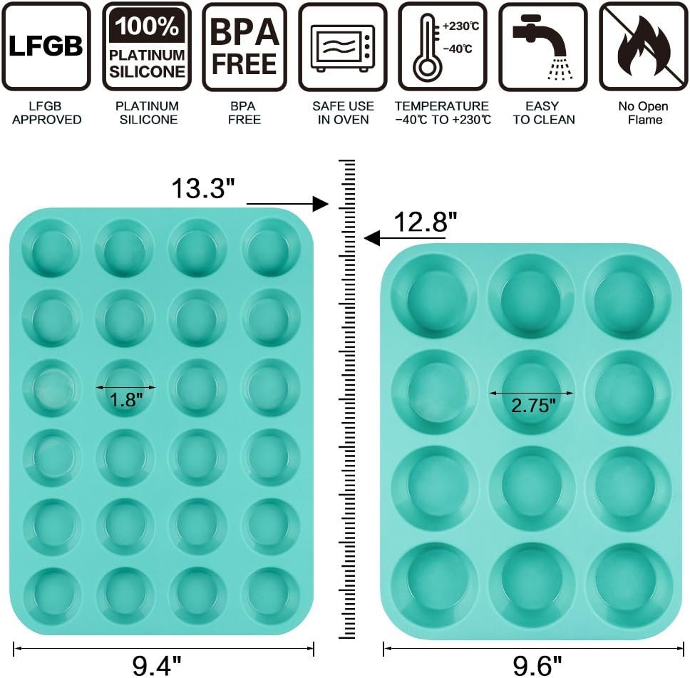 CAKETIME Silicone Muffin Pan Cupcake Pan Set – Mini 24 Cups and Regular 12 Cups Muffin Tin, Nonstick Food Grade Molds with 12 Baking Cups