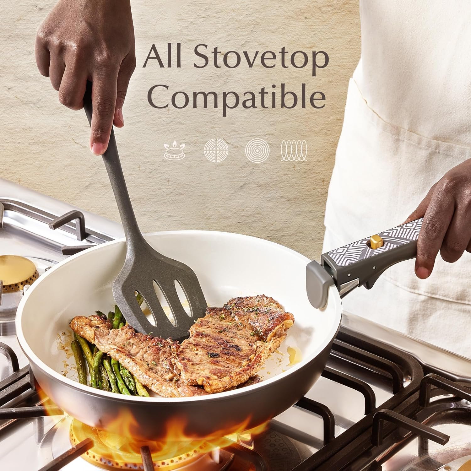 Space-Saving Detachable Handles: Easy to remove for compact storage. Ideal for small kitchens, apartments, and RVs. Transition seamlessly from stovetop to oven to table for added convenience.