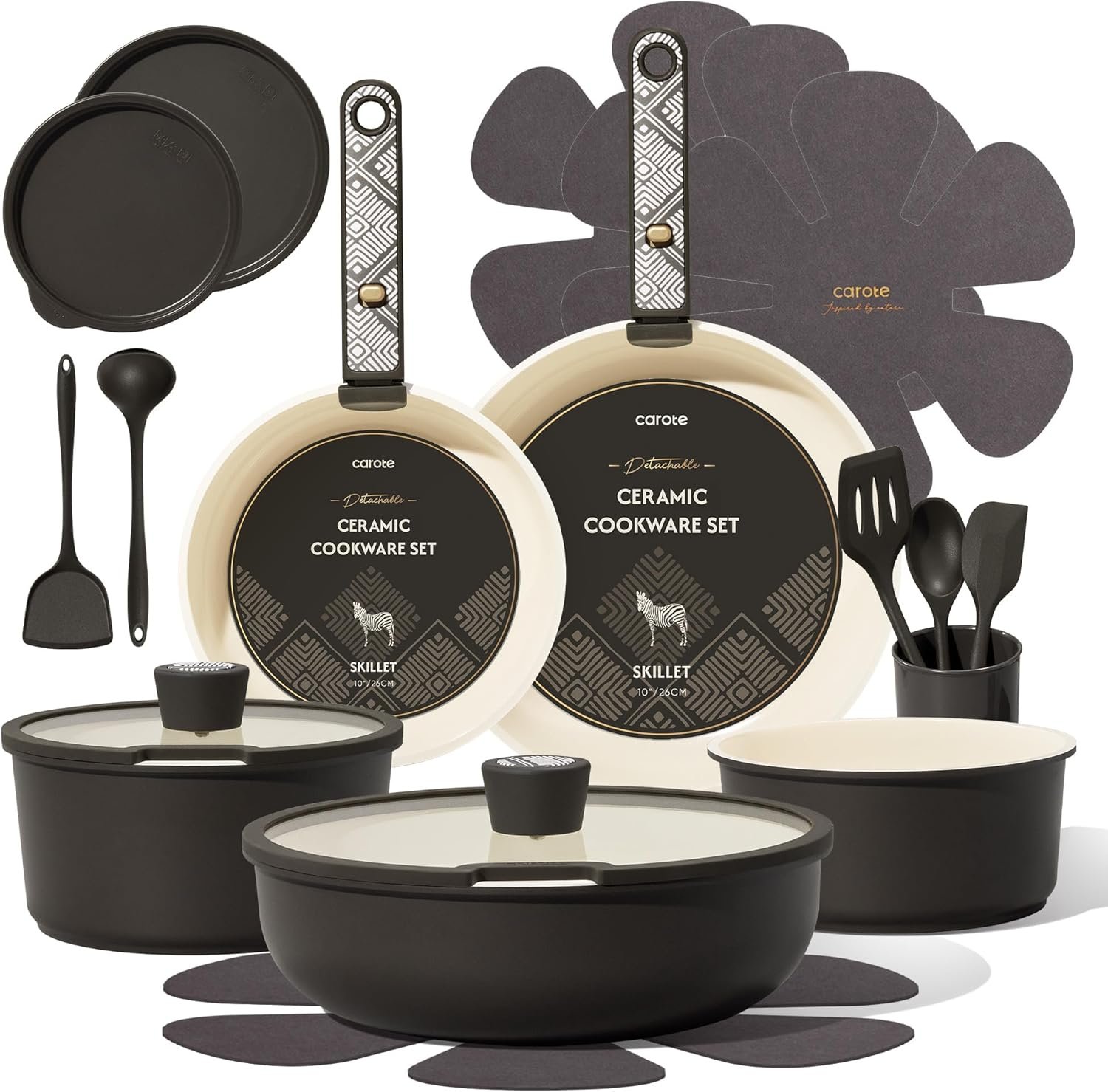 Be the first to review “CAROTE 21-Piece Ceramic Cookware Set, Nonstick Pots and Pans Set with Detachable Handle, Non-Toxic Kitchen Cooking Set, Induction Compatible, Dishwasher & Oven Safe, Charcoal”