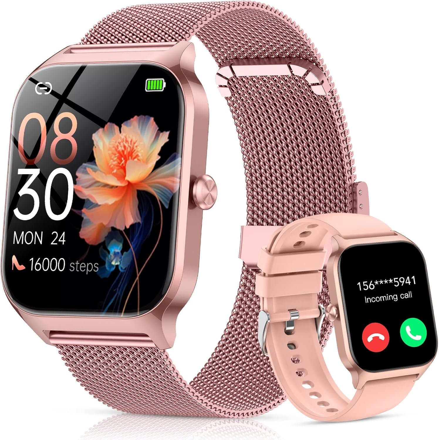 CASCHO Smart Watch for Women (2 Bands), Bluetooth Call Smartwatch with AI Voice,1.85″ HD Fitness Watch,Heart Rate/SpO2/Steps/Sleep Monitor,120+ Sports Modes,IP68 Waterproof Watch for Android iOS-Rose