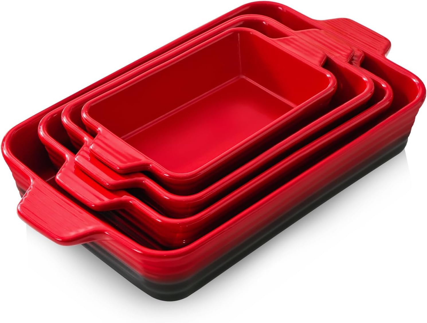 Casserole Dishes For Oven, Heat-Resistant Ceramic Bakeware Set Of 4 Rectangular Baking Dish Set With Handles For Lasagna, Cake, Pie, Dinner, Cooking, Ceramic Baking Dish, Red (9.4″/11.1″/12.2″/14.7″)